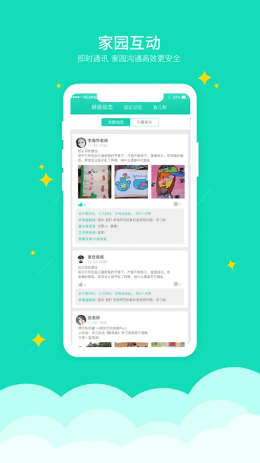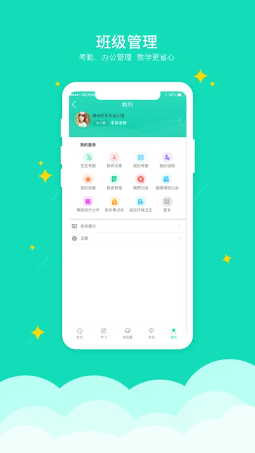 贝宝娃教师端是一款专注于幼儿园智能管理的App,主打互联网+幼儿园的家校互动。运用互联网新技术和新模式,构建幼儿园和家长互动平台。实时接收消息及校园活动通知,处理宝宝家长的叮嘱、请假,实时查看班级内检测记录、班级活动、考勤等情况,教师请假,考勤签到,查看教师自身的课程安排,随时查看宝宝健康数据统计及自身在校园内的工作安排等,从而帮助教师更好的管理班级。
