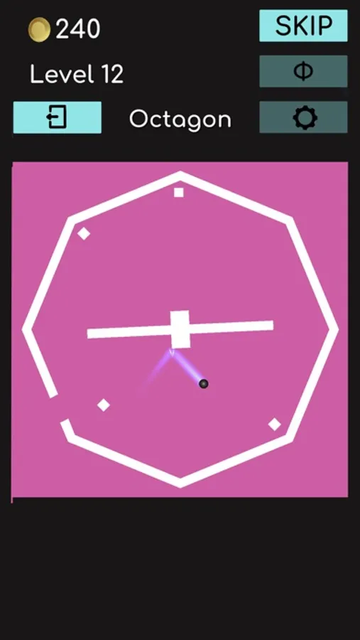 A speeding ball is trying to escape a polygon cage by bouncing off the inside walls.