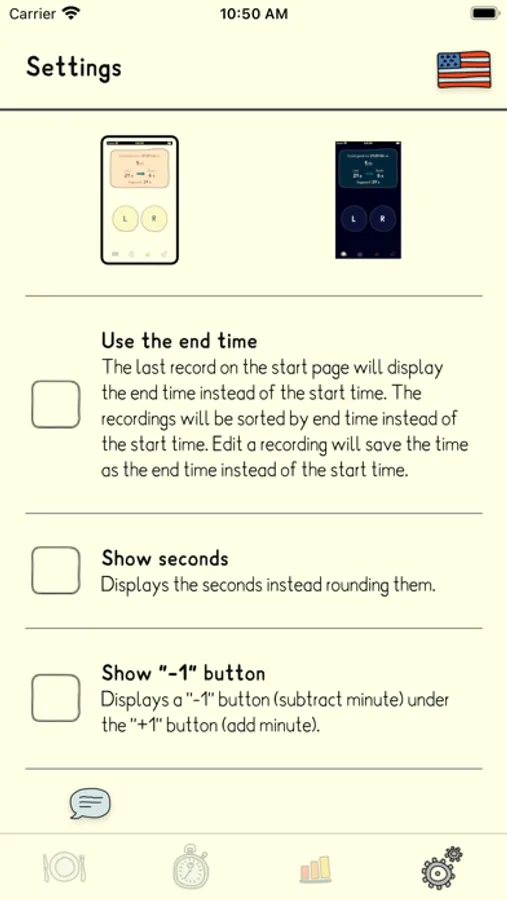 Of cource, there's a dark mode and you can easily add minutes if you started to feed your baby but did not got the time to start the timer yet.