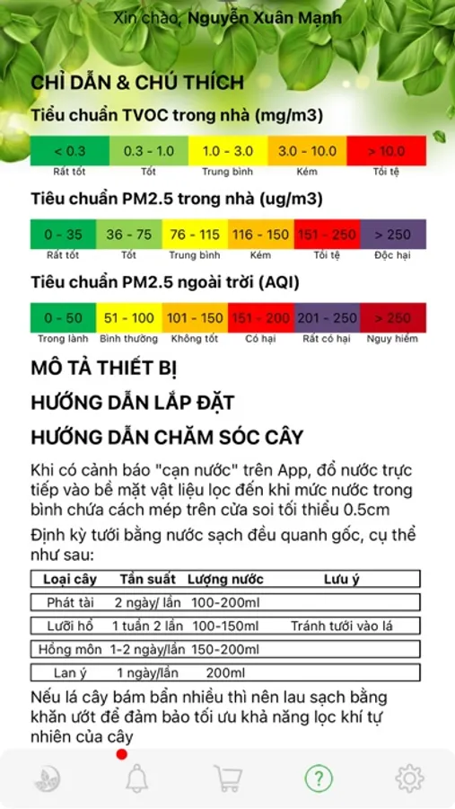 + Nồng độ các hợp chất hữu cơ dễ bay hơi TVOC (Ảnh hưởng xấu đến sức khỏe con người). Đây là chỉ số tổng hợp 59 hợp chất hữu cơ tồn tại trong môi trường không khí bị ô nhiễm như Formaldehyd, Benzene, Toluene...