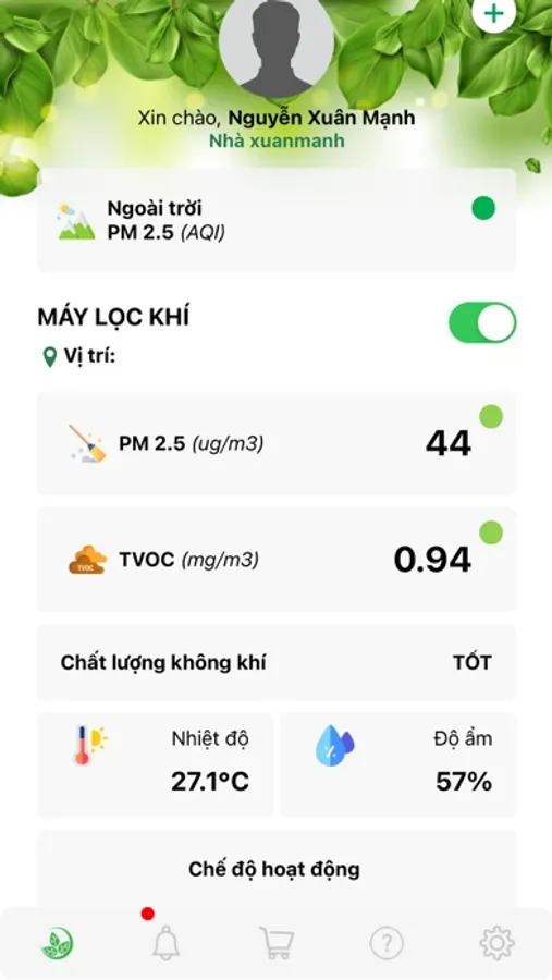 + Nồng độ bụi mịn kích thước PM1.0, PM2.5, PM10.