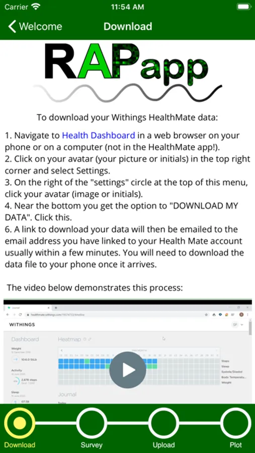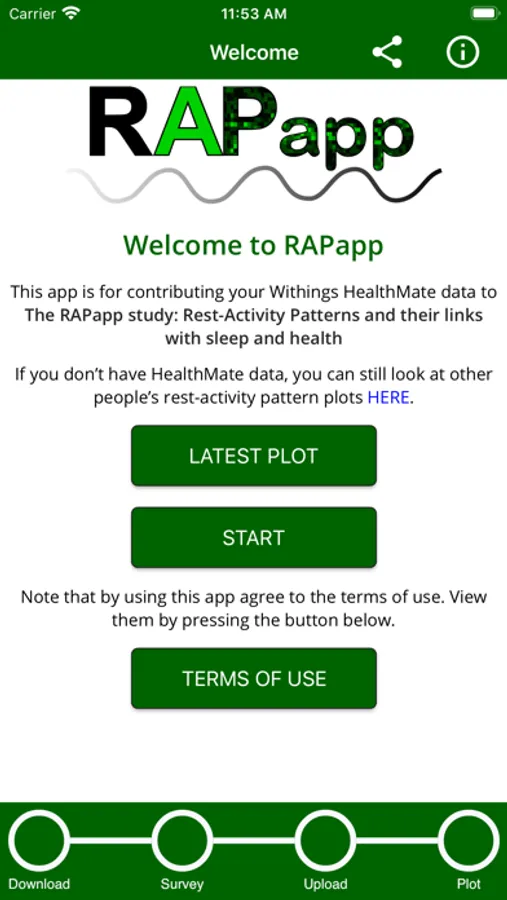 This app is for contributing your Withings HealthMate data to “The RAPapp study: Rest-Activity Patterns and their links with sleep and health”.