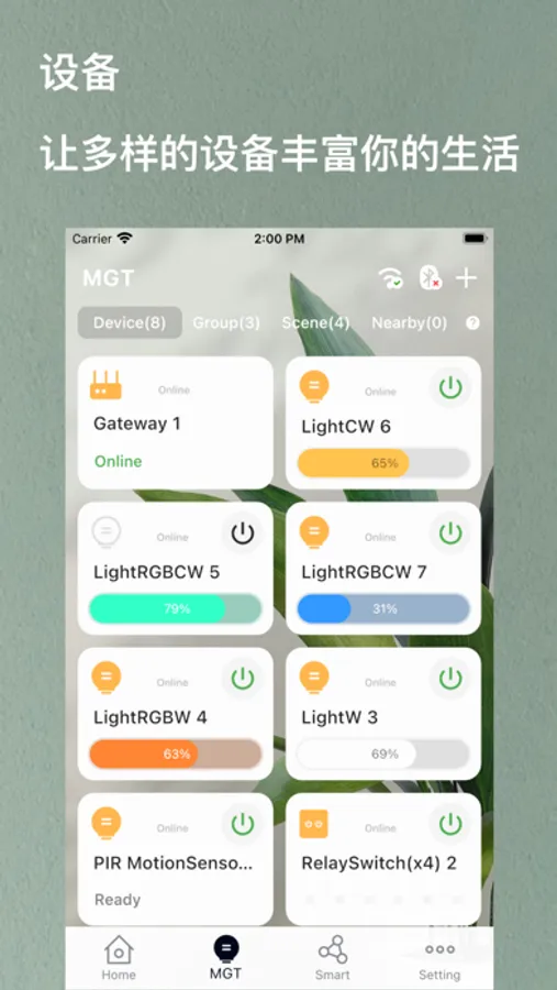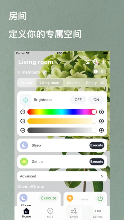 You can form multiple devices into groups for unified control. In addition, we support the creation of rooms. You can add devices or groups to a room to facilitate operation and management.
