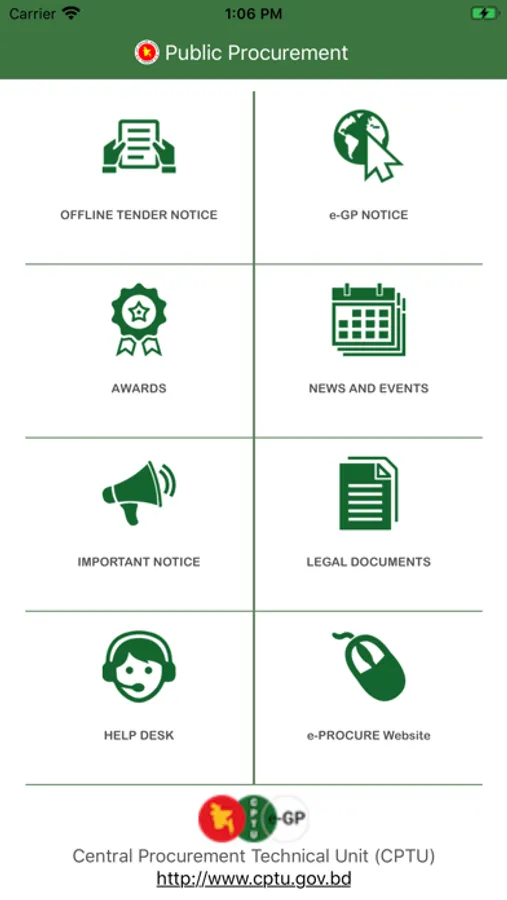 Public Procurement mobile app of CPTU for iOS, provides you information regarding the online and offline tenders/EOI notices of the government procuring agencies. Users can see the list of contract awardees as well. Latest news and events from the national e-Government Procurement (e-GP) portal along with important notices on public procurement are also available here. Users can find the tender related legal documents and call e-GP Help Desk at 16575 using the app.