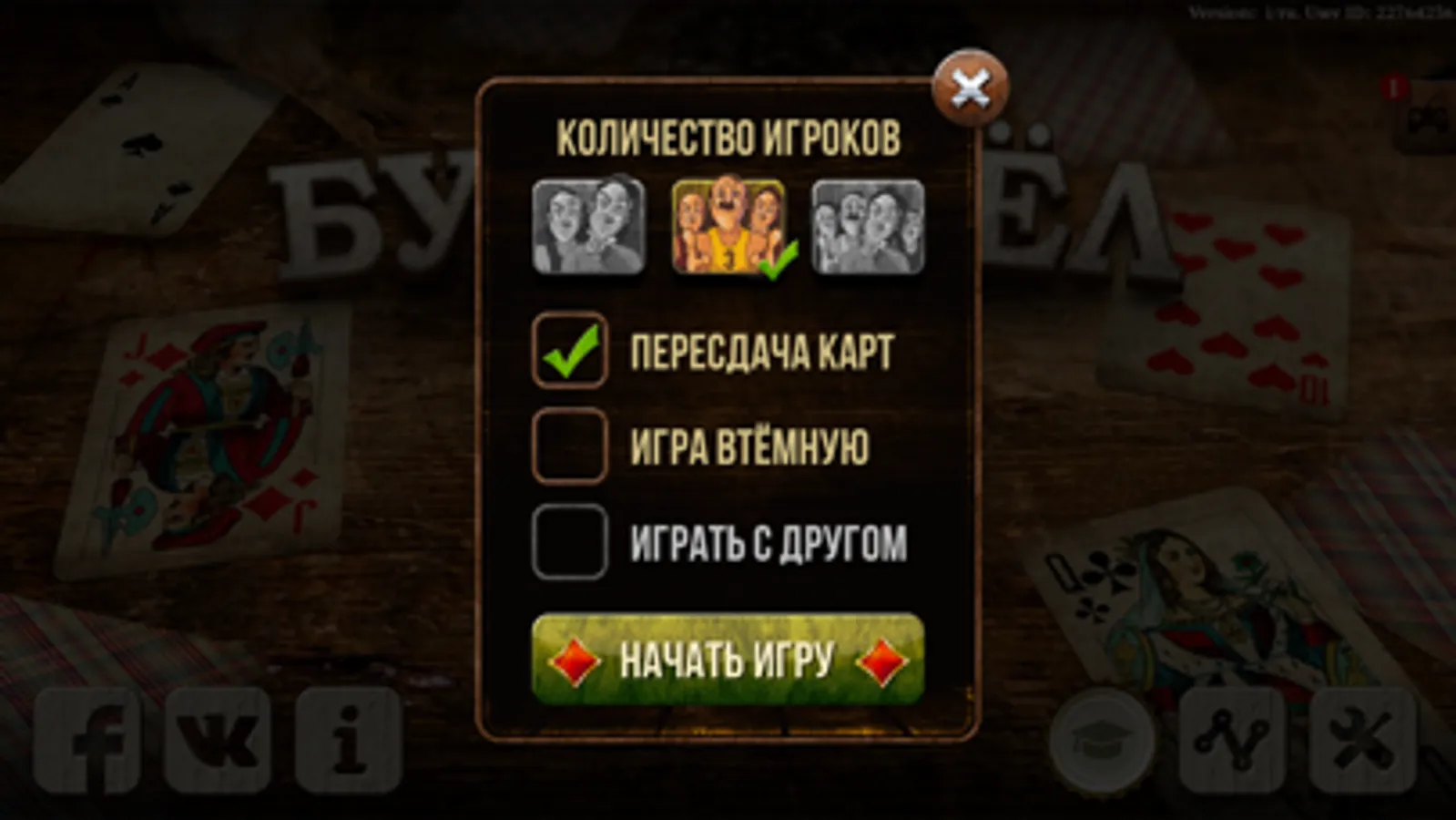 • Additional settings: the ability to play in the dark or reshuffle when the player has all 4 cards of the same suit
