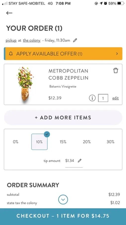 Place your order through your phone by selecting your restaurant location, pickup or delivery, and the time you’d like to get your order.