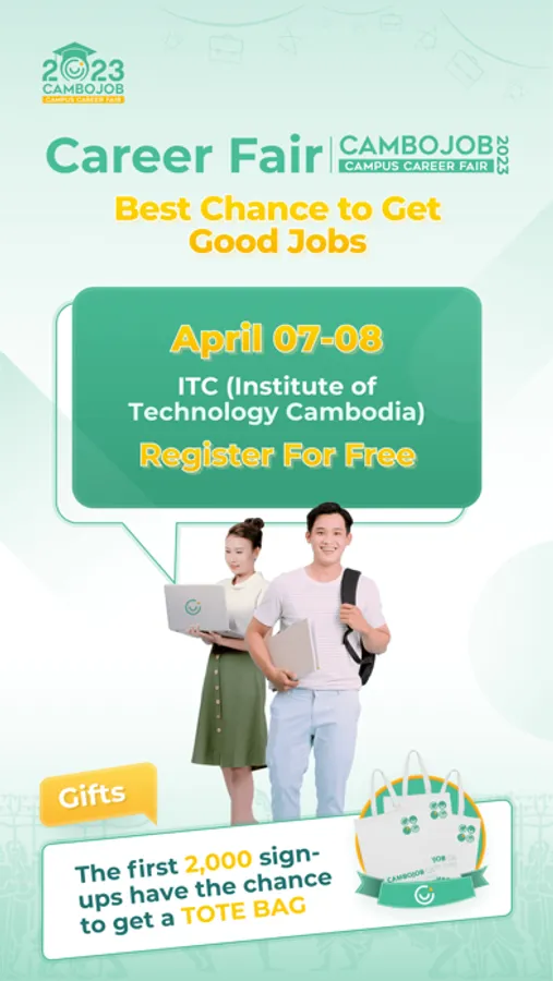 Join us now and boost your career by using our job recruitment app. Never miss an opportunity to find the best Cambodia jobs online!