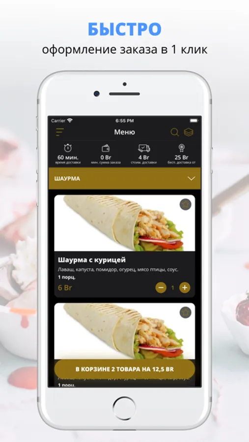 Вкуснейшие шаурма, бургеры, шашлык и другие блюда с доставкой по г. Барановичи в течение 60 минут! При заказе от 25р доставка по г. Барановичи, Жемчужный, Мир, Новая Мышь, Приозерное БЕСПЛАТНО.