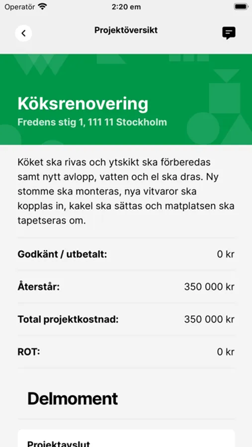 I appen kan du se alla pågående projekt, med dokumentation och annan information som uppdateras löpande och i realtid.