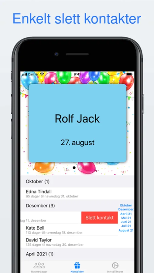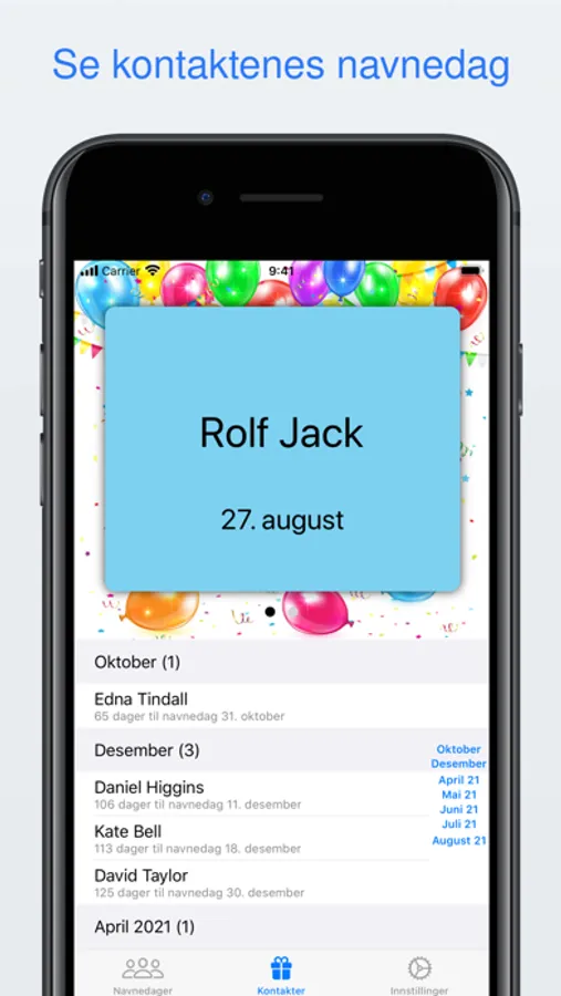 - I tillegg kan du også se når kontaktene dine har navnedag
