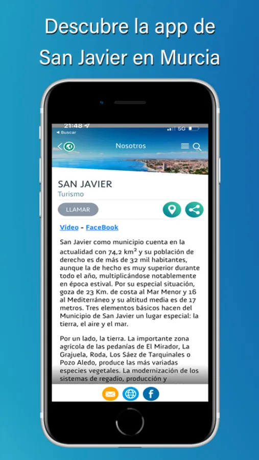 Con "Descubre San Javier" podrás conocer de primera mano una guía en formato digital configurada como oficina virtual de turismo sobre San Javier y su entorno, rutas guiadas por GPS, naturaleza, actividades e itinerarios especiales, propuestas gastronómicas, culturales y de ocio.