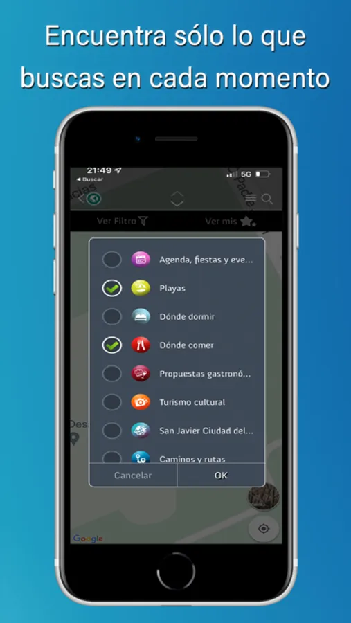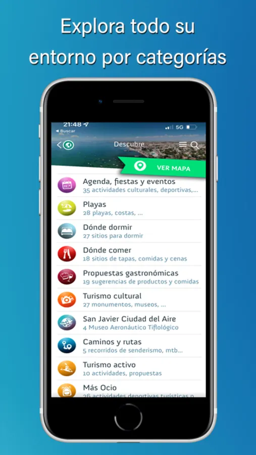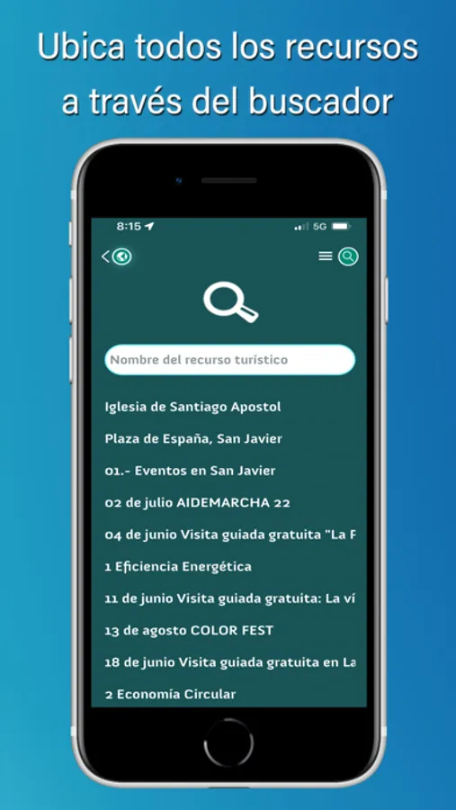 Con nuestra guía de San Javier, podrás encontrar los mejores sitios de la zona. A través de su buscador de recursos puedes escribir lo que buscas y la app de informará en cada caso donde puedes encontrarlo.