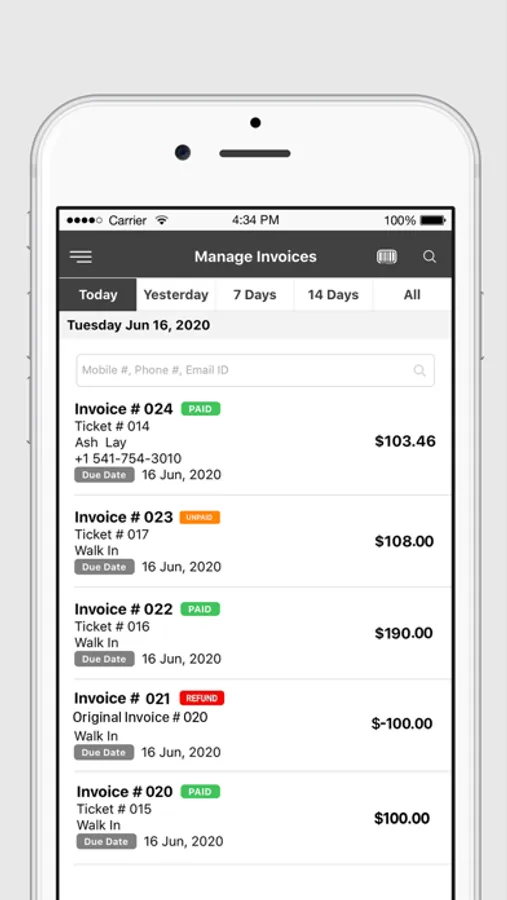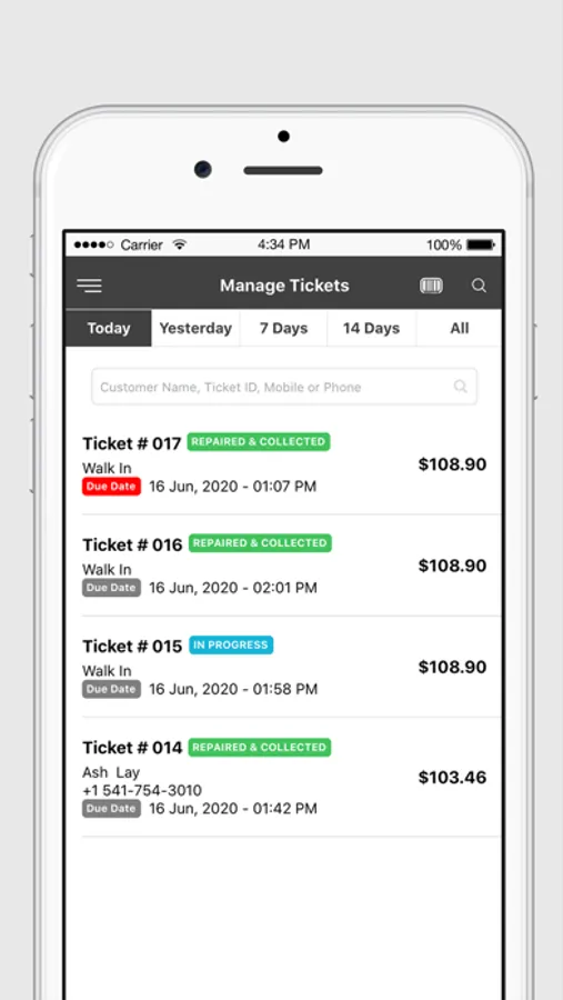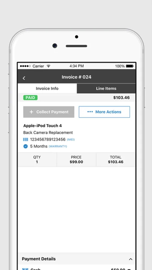 With this easy-to-use app, repair shops can create repair tickets, track commission, open tickets count, email invoice and utilize many other original features of the web app on the go. Using this app, you can easily create manual invoices or convert any repair ticket to an invoice within a couple of seconds. Accepting payments through cash or other custom payment methods can also be done through the mobile app.