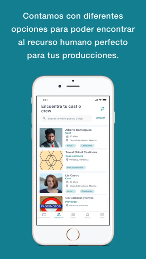 Todos tenemos un talento oculto, una habilidad o un físico que nos diferencia. Seas quien seas, profesional o amateur, crea tu perfil en FILMMAKERS HUB y deja que te encuentren. Directores, actores y actrices, proveedores, casas castineras, crew, casas productoras, todos disponibles para tu proyecto e impulsar tu carrera. Encuentra posibilidades al instante.