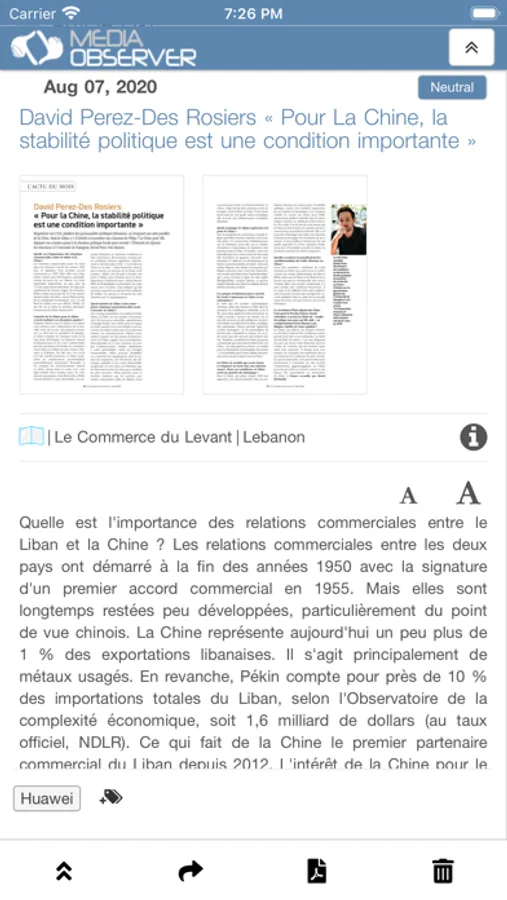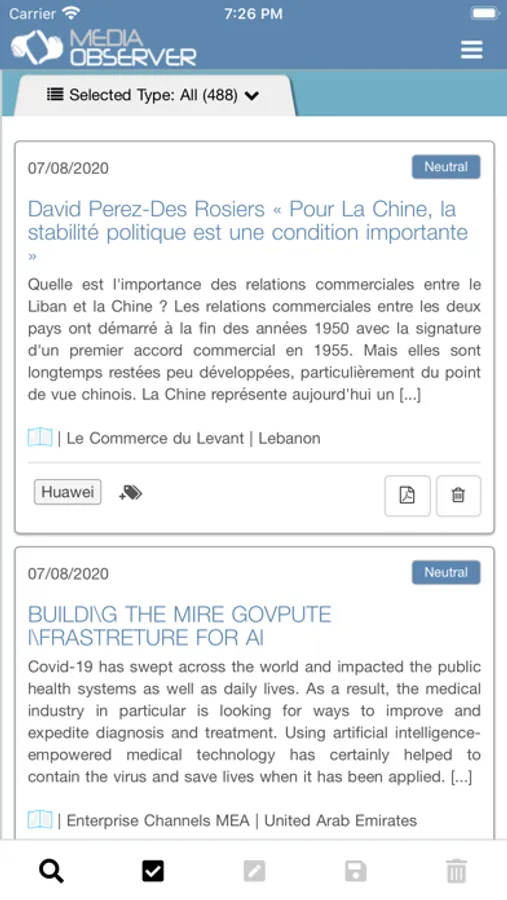 Be the first to know while on the go. With MediaObserver Mobile you will be able to stay on top of all your monitored news with a few simple clicks, you will be able to search, tag, share articles, read their content, see more insightful details and statistics that would keep you the first to know always!