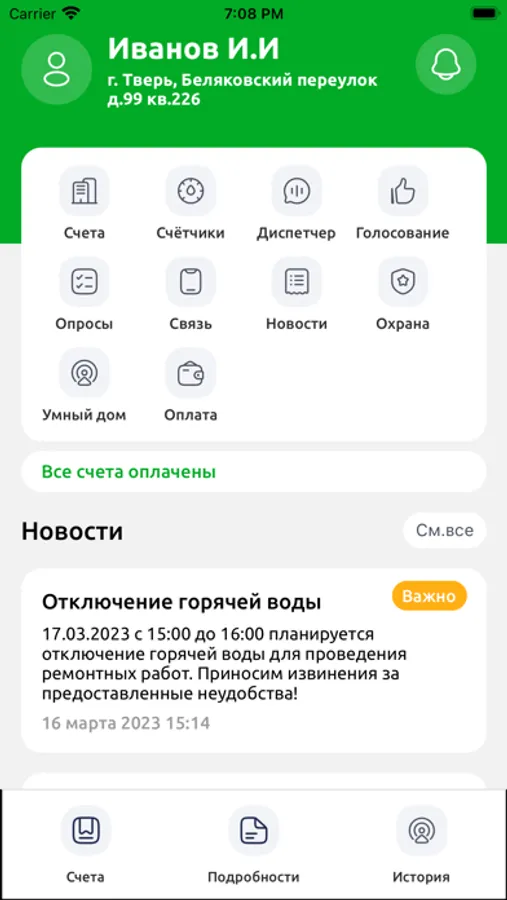 - посмотреть всю информацию по начислениям и оплатам за услуги ЖКХ,