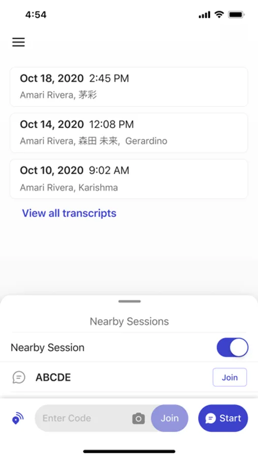 -Browse and view your previous transcripts from your home screen