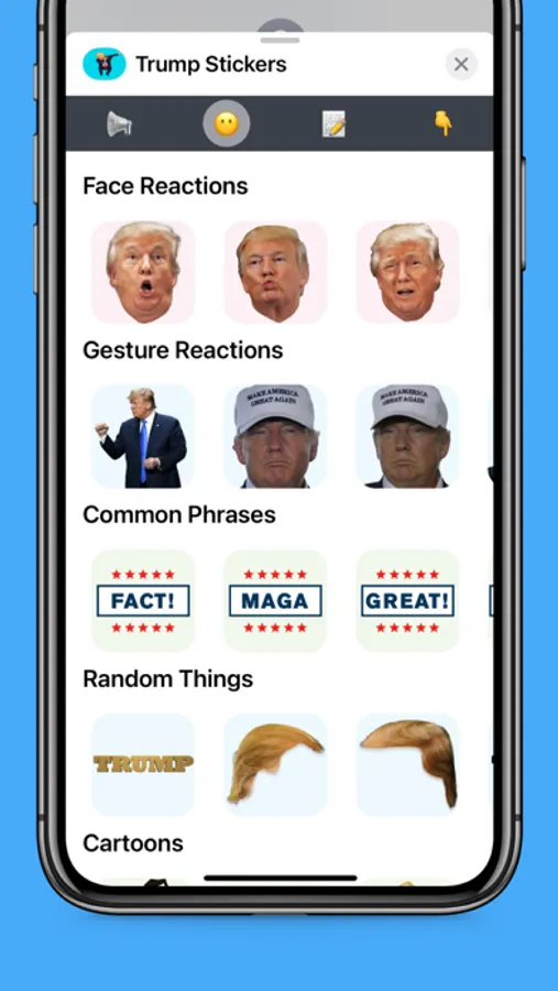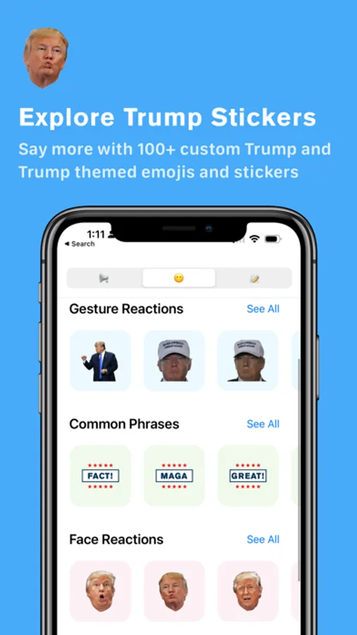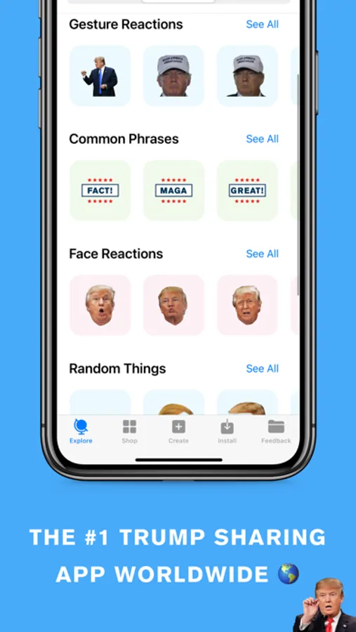Make your social media come alive with custom cut-out stickers featuring the 45th president, or use the soundbites in your next video project. The possibilities are endless with this versatile and entertaining app.