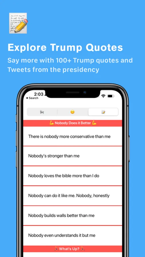 Unleash your inner Trump with the ultimate political expression tool - the Trump Soundboard app! With over 200+ iconic soundbites, custom cut-out stickers, and quotes, you'll never run out of ways to make your voice heard.