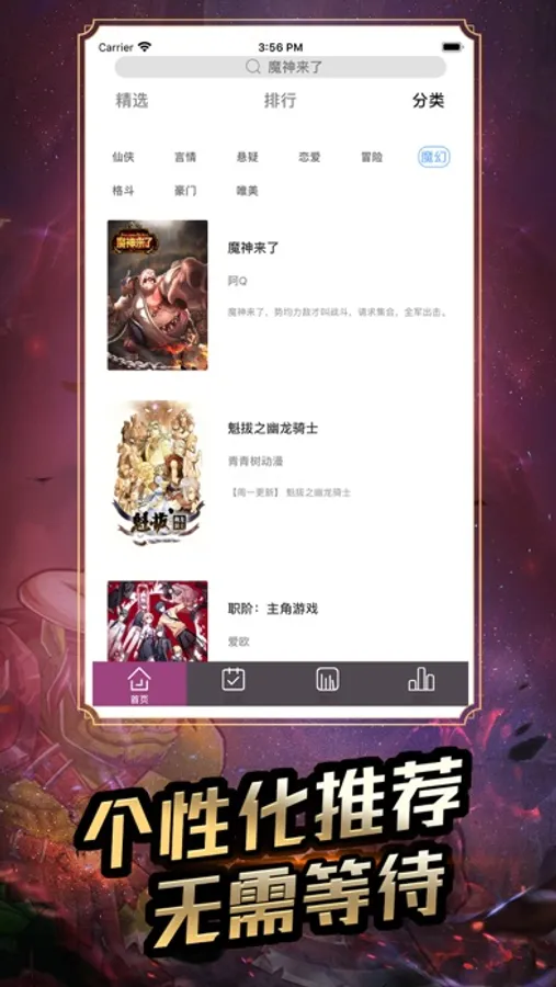 涵盖上千部国内外优质漫画,题材分类齐全,海量漫画每日更新,是漫画爱好者的必备神器。