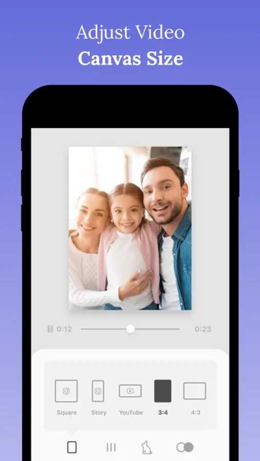・Crop Tool: Adjust the video canvas size to make it look perfect as a square post or a vertical story.