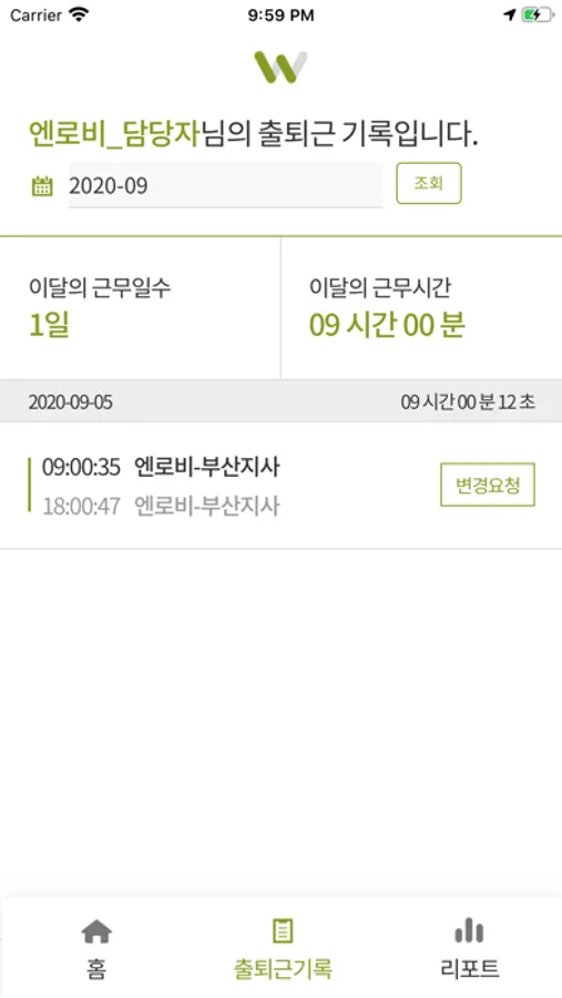 - 사외 현장 출/퇴근, 출장 등 근태내역 변경 요청 기능