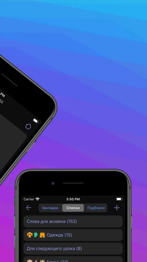 Besides the translation, in the app you will find flashcards that are based on selected words, as well as words from your lists. It will help you to strengthen your knowledge and improve your language skills.