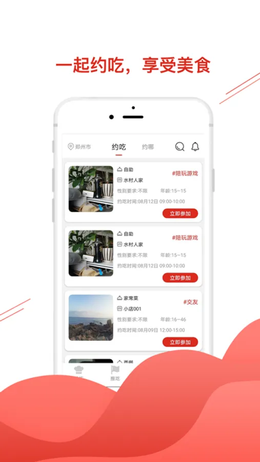 约吃APP是一款综合性美食平台,提供线上线下订餐服务,可以线上约陌生人或者朋友一起吃饭;