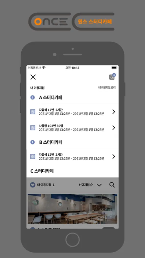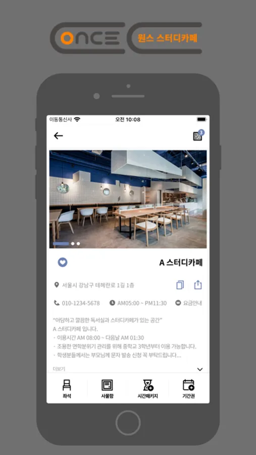 원스스터디카페 (ONCE STUDY CAFE) 어플리케이션 입니다.