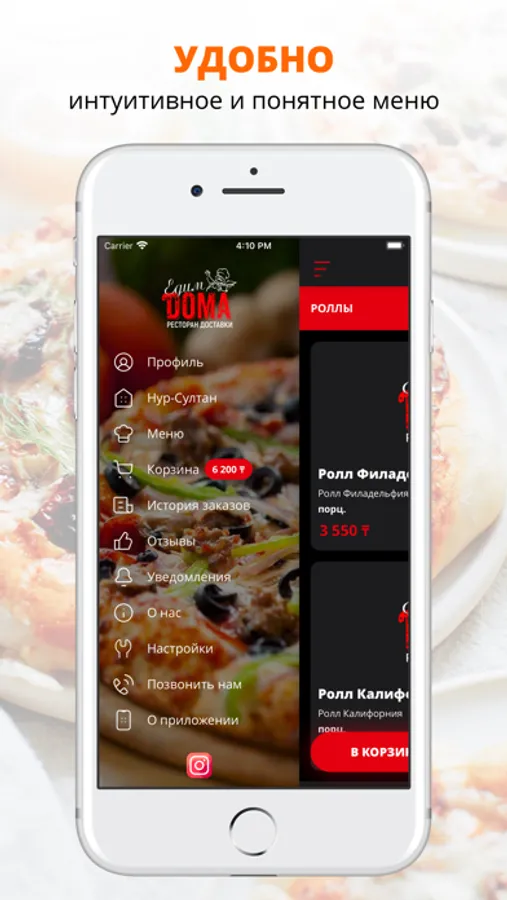 Онлайн ресторан Едим дома. Домашняя еда и напитки. Доставка самой вкусной и только свежей еды в Нур-Султан.