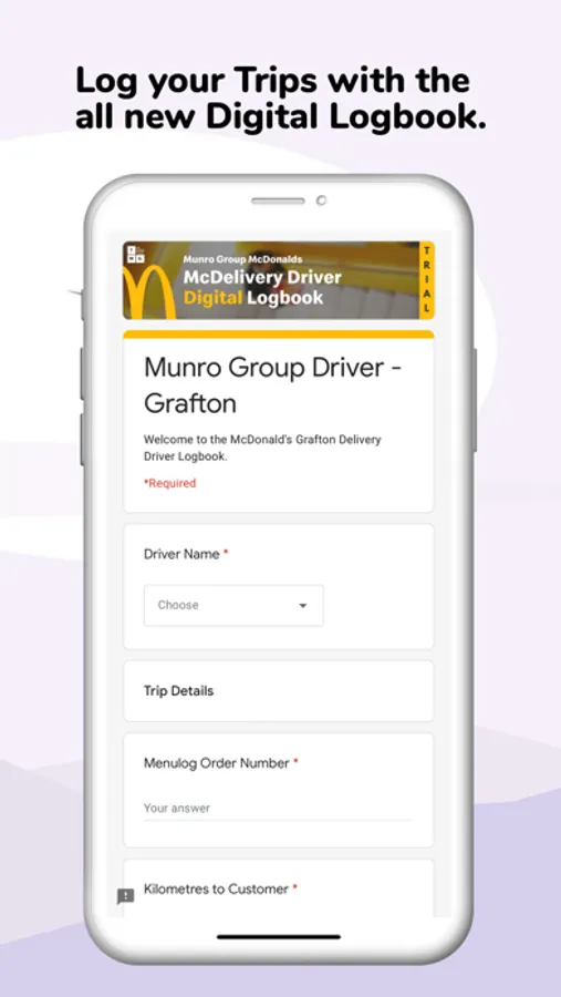 This app has been made for Crew to easily log their McDelivery Trips. For more information, please contact your restaurant manager.