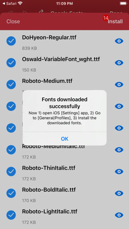 [Font Installer] is a very powerful utility app which enables you to search, download and install any custom font on your iOS device.