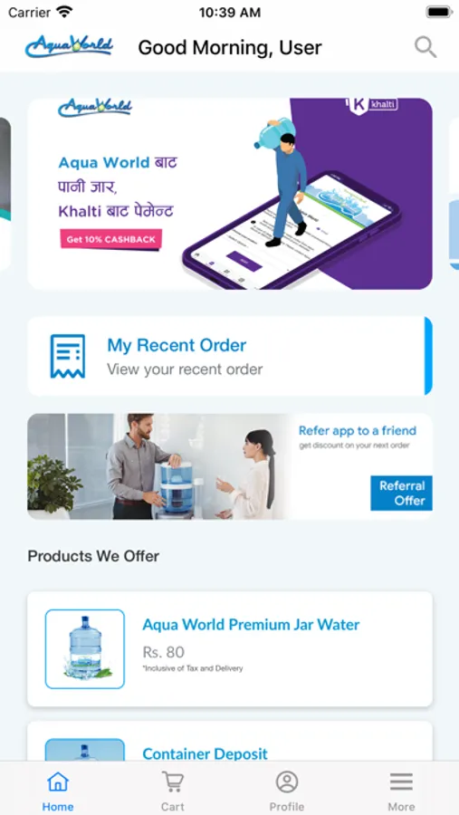 Aquaworld water app is an online ordering application which provides a wide range of product related to the water supply.