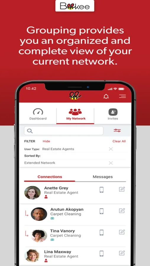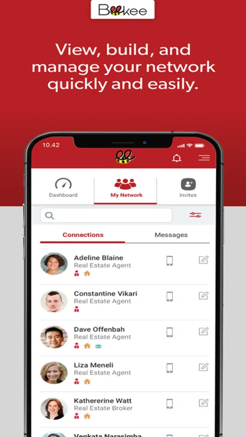 BeeKee Real Estate for agents and brokers puts the power of your network in the palm of your hand. Immediately begin inviting and connecting with colleagues to build and expand your professional reach. What’s more? BeeKee puts your service professionals to work by connecting with the BeeKee Pro and Homeowner applications to create an end-to-end ecosystem that promotes growth with those you value most. Get started, Today!
