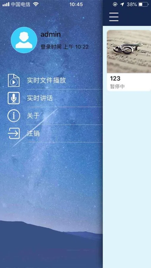 此APP为广播系统平台控制软件,主要用于对网络设备对终端进行单独或统一的控制;支持WIFI网络扩展,实现远程管理;内置实时播放,实时讲话和云端文件上传三大功能;支持手机即时播放手机内部音频文件,同时支持上传文件到服务器,作为服务器媒体库资源,实时讲话能通过手机客户端进行广播寻呼,方便快捷。
