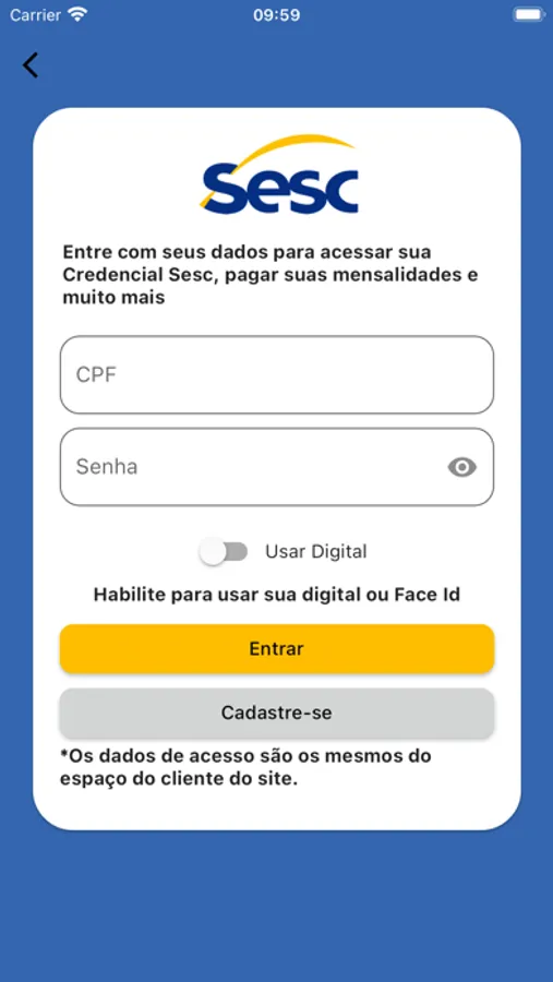 O Aplicativo oferece serviços diversos para o cliente Sesc Tocantins, como cartão Sesc virtual, recarga de cartão, pagamento de mensalidades etc.