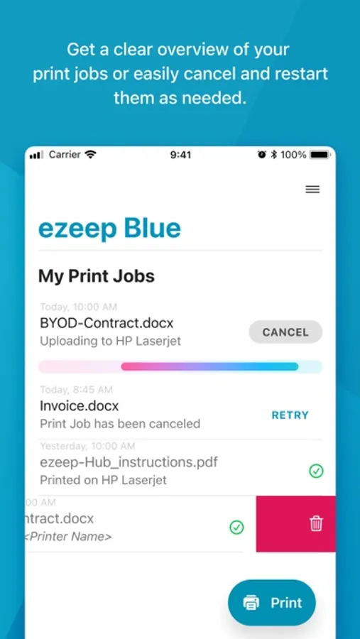 Cloud Printing made easy for individuals as well as businesses and organizations of all sizes: With ezeep Blue, print from your iPhone, iPad, or iPad Pro to any ezeep Blue managed printer or any printer in your Wi-Fi network – true mobile printing.