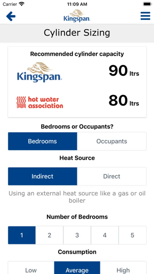 CYLINDER SIZING tool will help you choose the right cylinder capacity based on the number of bedrooms or occupants in your household, your heat source and hot water consumption.