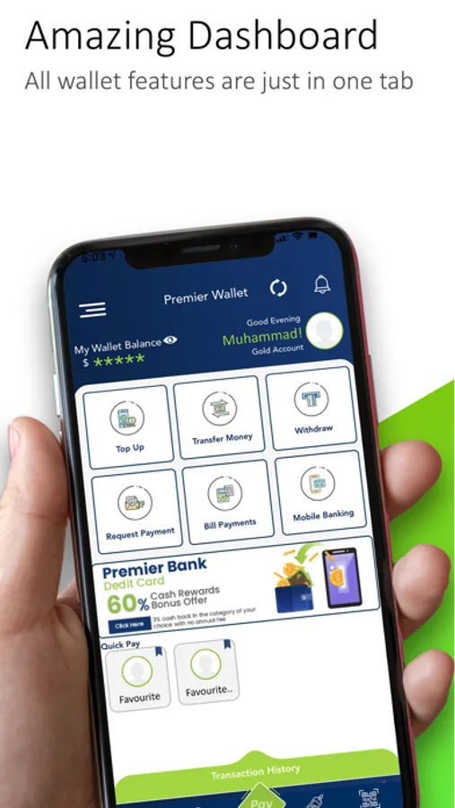 Premier Wallet is the first fully featured digital wallet in the country powered by Premier Bank. Premier Wallet helps you to shop, dine, pay bills and manage your digital cash on the go. From now onwards, you no longer have to worry about carrying cash nor struggle while exchanging money. Premier Wallet is an all-in-mobile smart wallet app that offers you real-time, online payment for your everyday shopping, online Bill Payment and money management.