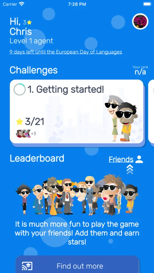 The challenges and quizzes contained within this app encourage learners – future international agents – to take advantage of the plentiful opportunities available to practice or learn more about a language beyond a classroom context. By passing through a series of levels you can rise from a lowly agent in training to become a master secret agent. You can compete with friends in achieving challenges, identifying countries and languages and completing quizzes. The challenges go from the easy, such as, “count from 1-10 in 3 different languages within one minute” to ones that are a bit more demanding, “together with a friend, write the words to a song/rap in a foreign language”.