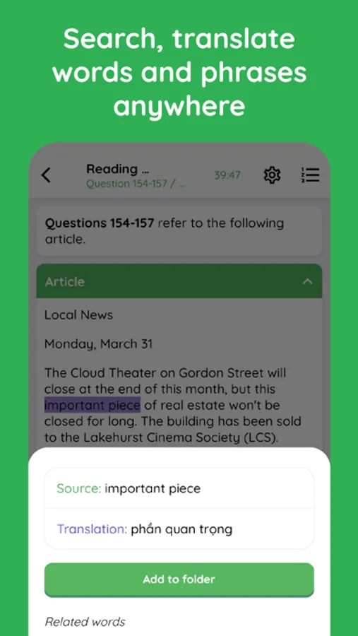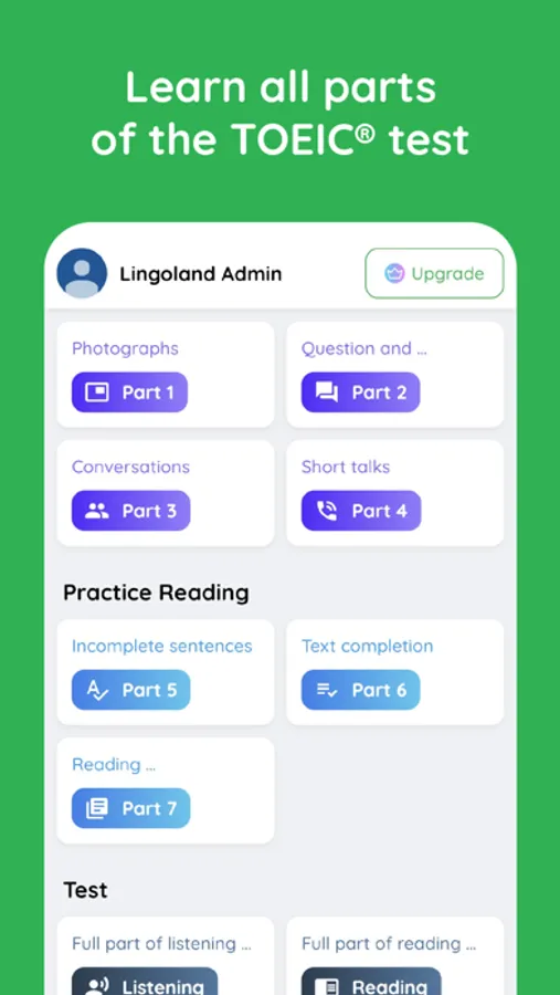 Lingoland TOEIC® helps you improve listening and reading skills in the format of the TOEIC® test. Lingoland TOEIC® is a useful and effective study application for TOEIC exam preparation. With many tests updated regularly, this application helps users improve their English language ability and confidently prepare for the TOEIC exam in depth.