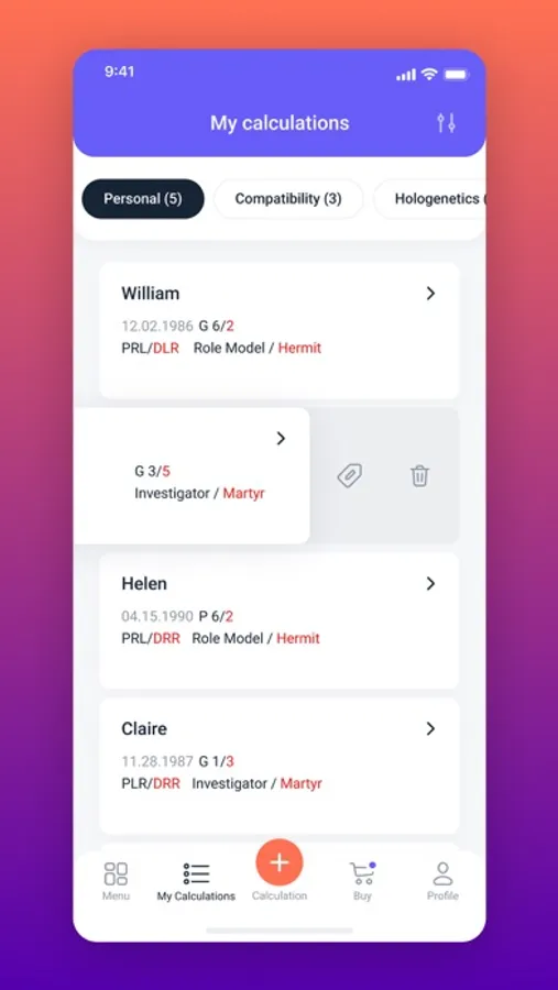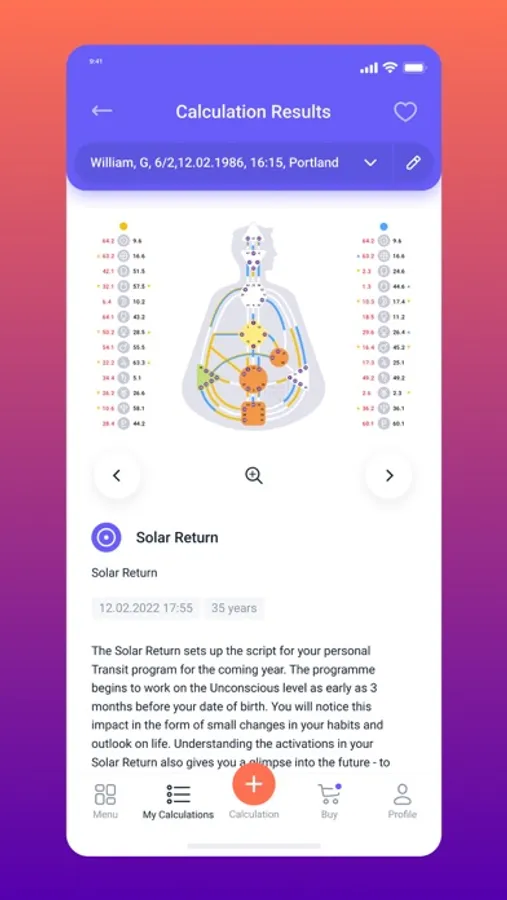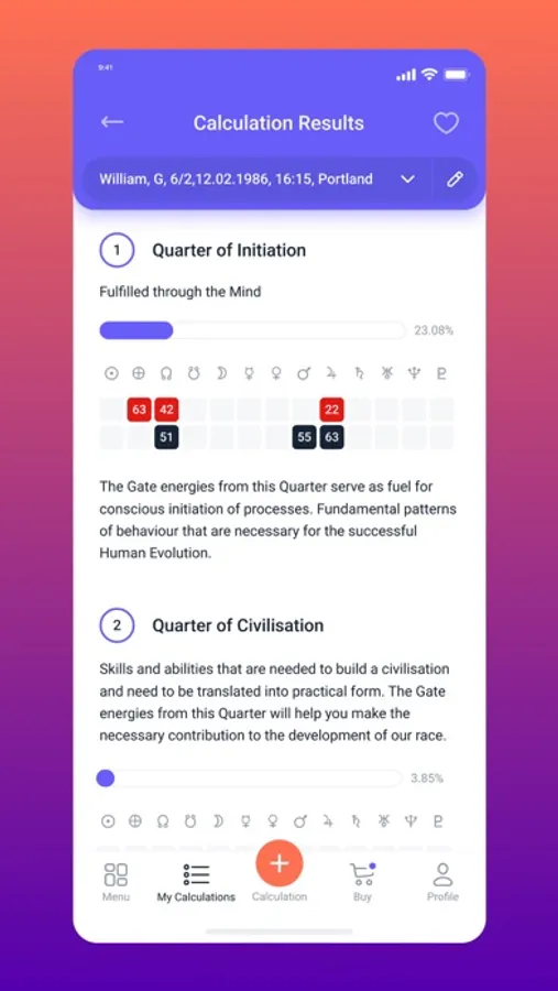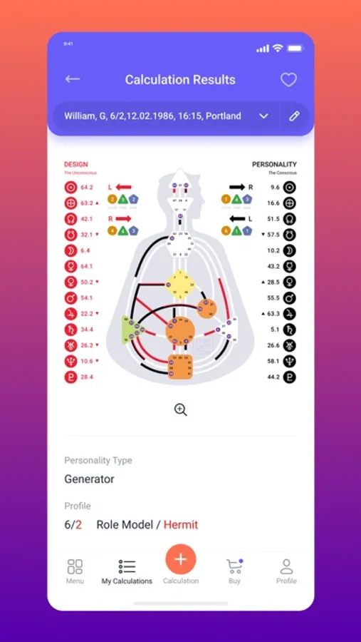 Through the mobile app you can also purchase different versions of personal chart reports in Human Design, an author's analysis report of your Hologenetic Profile, as well as a report of your compatibility with your loved one.