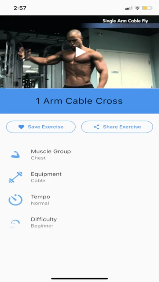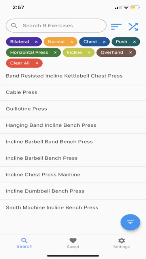 With just a few taps you can sort exercises by a large selection of categories like: Muscle Group, Movement Pattern, Angle Of Incline, Tempo, Equipment Used, or Difficulty Level - and many more!