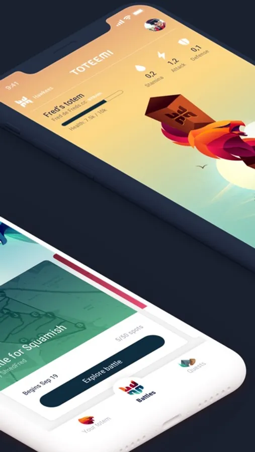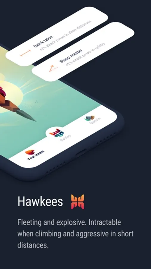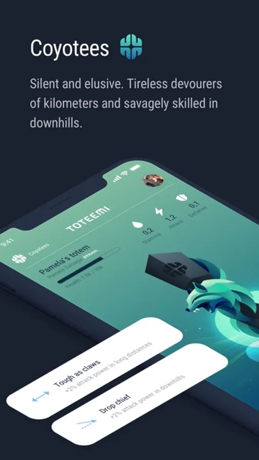In Toteemi there are two factions that compete for the dominance of territories: the Hawkees (fast and explosive), and the Coyotees (resistant and skilled). Join the side that best represents you as an athlete to fight for victory in every battle.