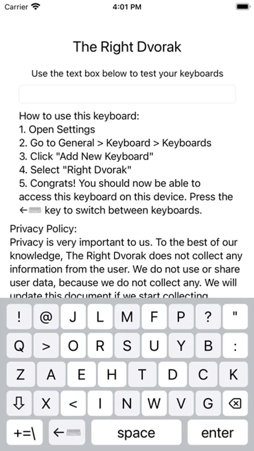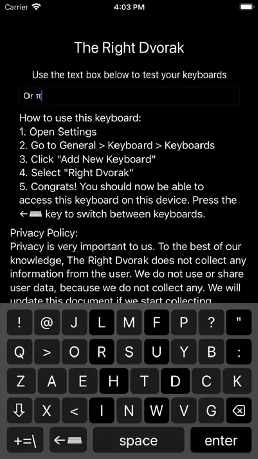 Dvorak-Right-Handed keyboard layout for your iPad/ iPhone.
