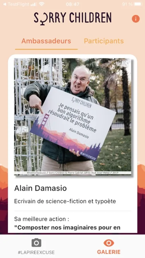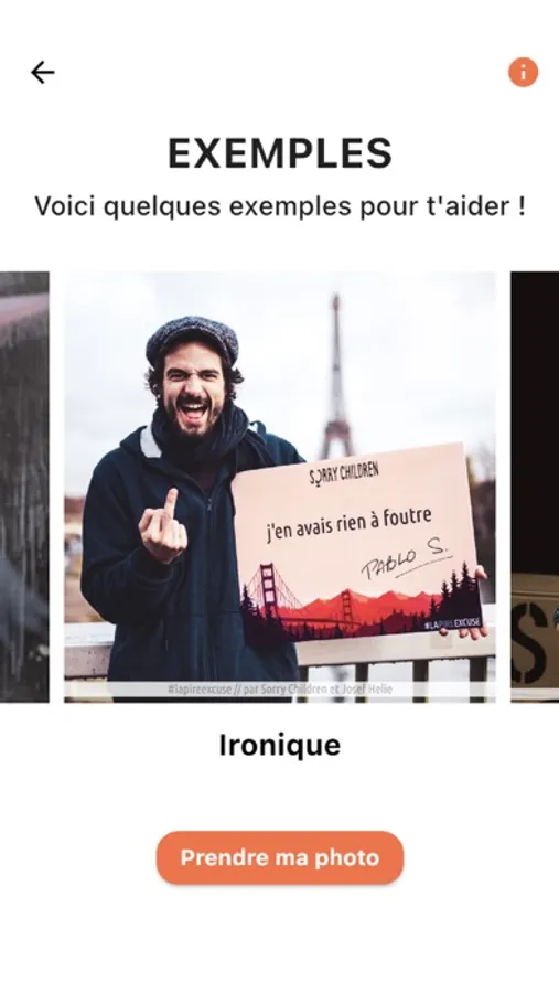 - Prendre une photo de vous sur laquelle s’ajoutera automatiquement la pancarte Sorry Children avec votre excuse : à vous d’être créatif !