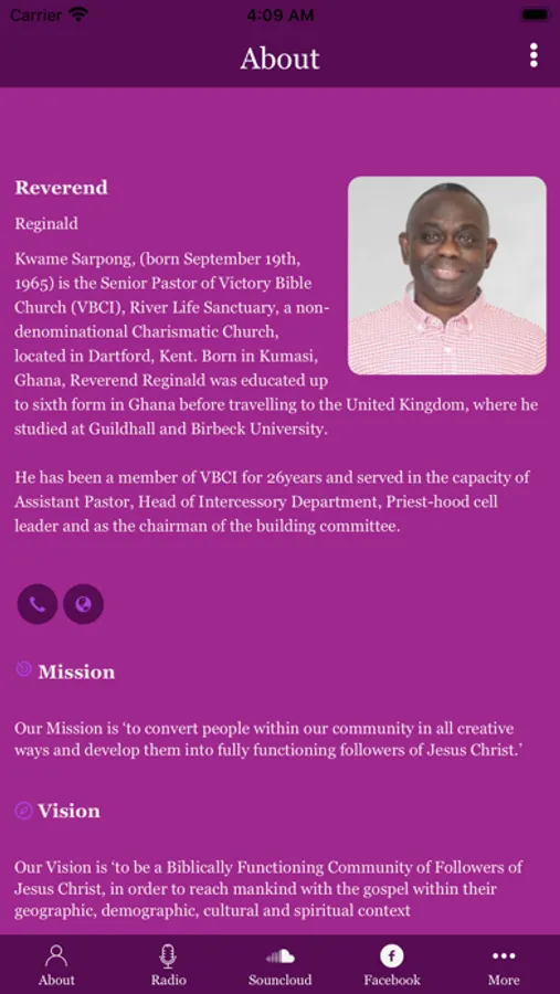Reverend Reginald Kwame Sarpong, (born September 19th, 1965) is the Senior Pastor of Victory Bible Church (VBCI), River Life Sanctuary, a non-denominational Charismatic Church, located in Dartford, Kent. Born in Kumasi, Ghana, Reverend Reginald was educated up to sixth form in Ghana before travelling to the United Kingdom, where he studied at Guildhall and Birbeck University.