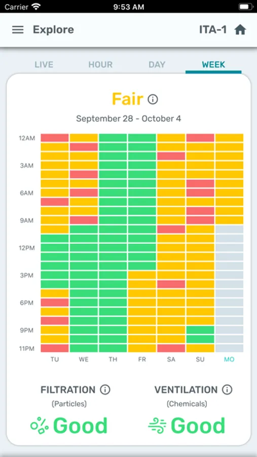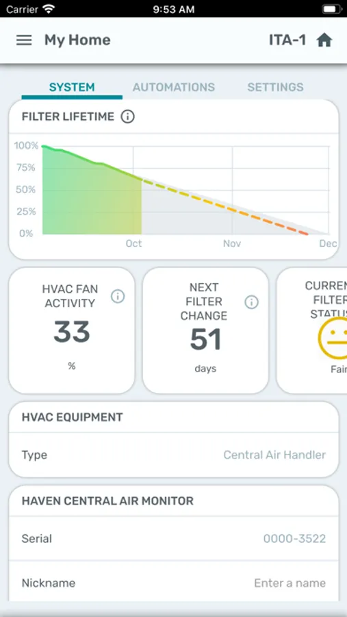 HAVEN IAQ provides you with 24/7/365 insight into your home’s filtration, ventilation, relative humidity and temperature. Also provided are recommendations when air quality thresholds are crossed. The "Contact your HAVEN Pro" tab makes it easy to get in touch with your HVAC professional for clean air services, year round.