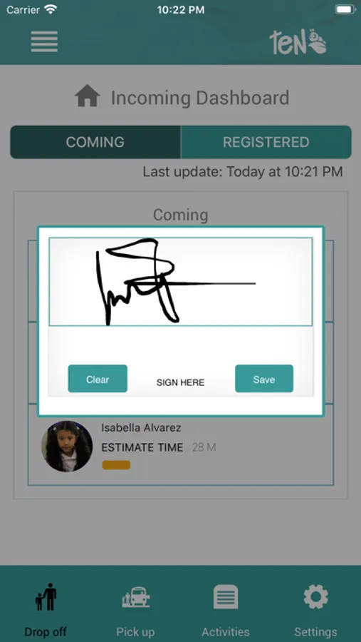 Finally, the system will request and record the parents' signature that is a requirement from the state authorities that confirms their agreement to keep the child at the school.