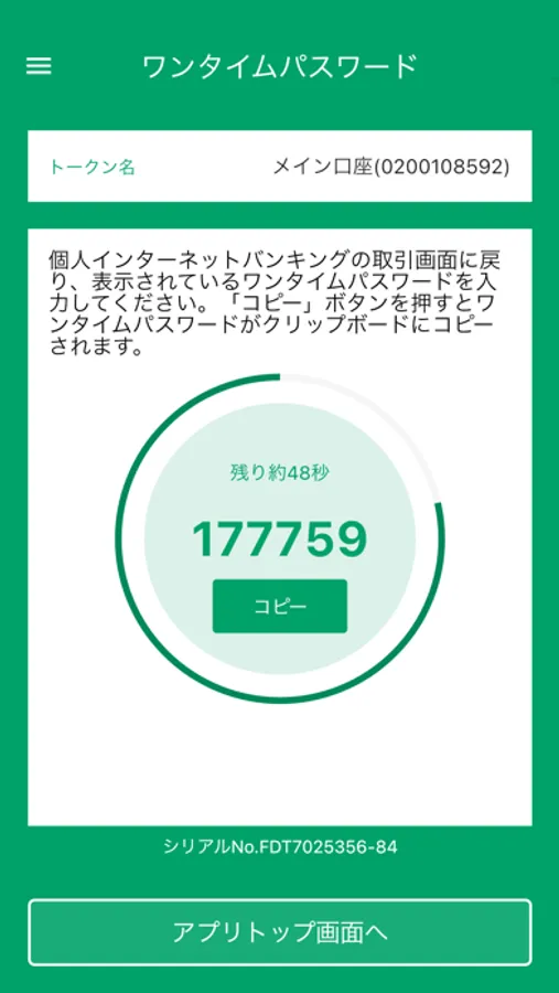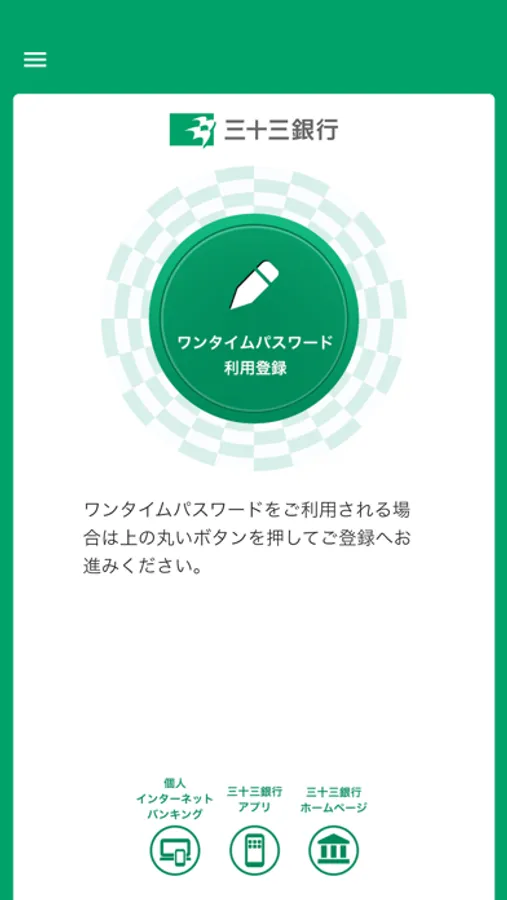 三十三銀行が提供する「個人インターネットバンキング」利用者向けの公式ワンタイムパスワードアプリです。